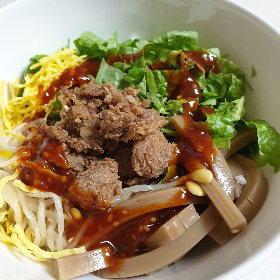 도토리묵, 콩나물, 지단, 고기, 상추, 고추장, 참기름까지!